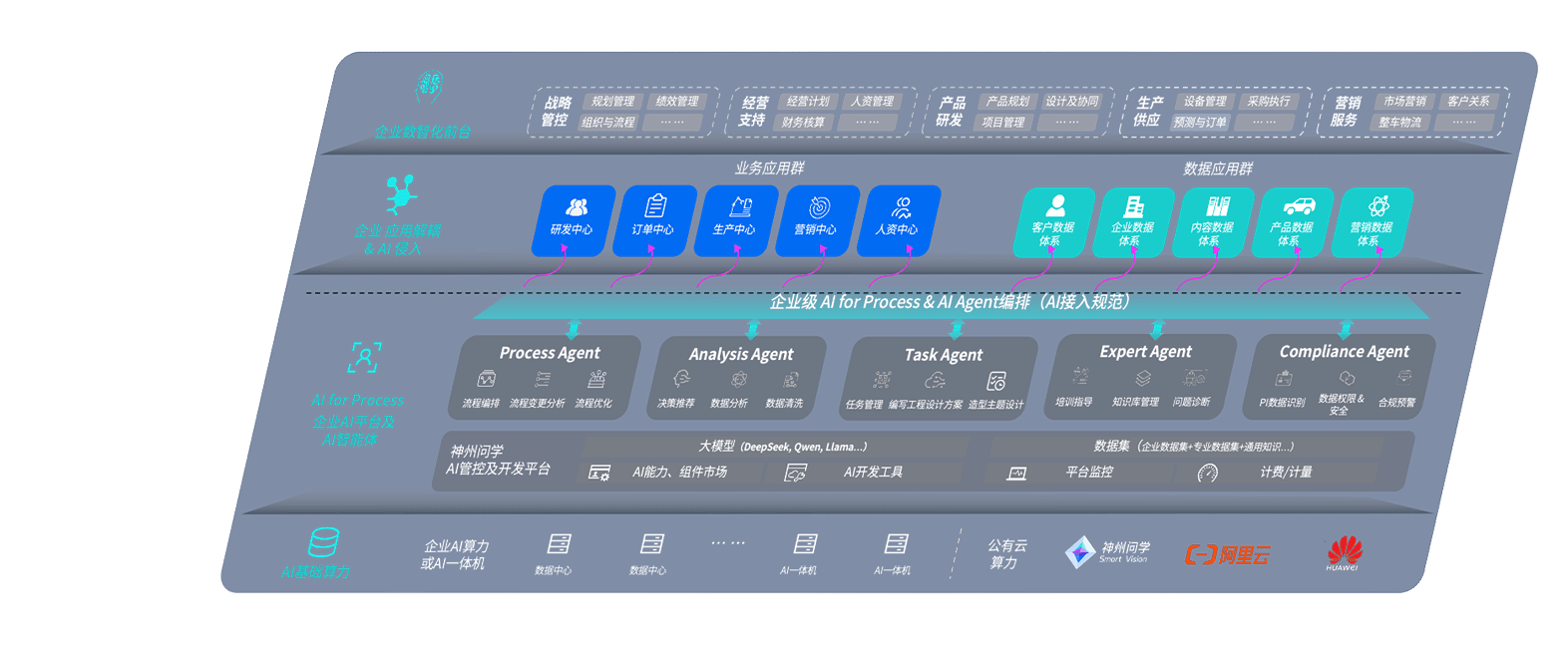 意昂4问学智车解决方案是一套基于AI技术的汽车行业智能化系统,,,,覆盖从底层算力到顶层AI应用的全栈方案。。。。方案由算力层、、、模型层和应用层组成:算力层,,,方案支持多种一体机配置,,,,具备云端灵活部署、、、多云适配以及动态优化计算资源的能力;模型层,,,,意昂4问学平台版提供了企业级AI应用一站式构建与管理平台,,,支持基于后训练强化技术的汽车企业专属模型的训练、、评测和运营;应用层,,,,意昂4问学DeepSeek版提供包括超级员工、、、、智能招采、、、、智能营销、、智能客服、、AI for BI等一系列解决方案,,,可助力汽车行业实现数字化转型,,,让管理更智能、、响应更敏捷。。。。